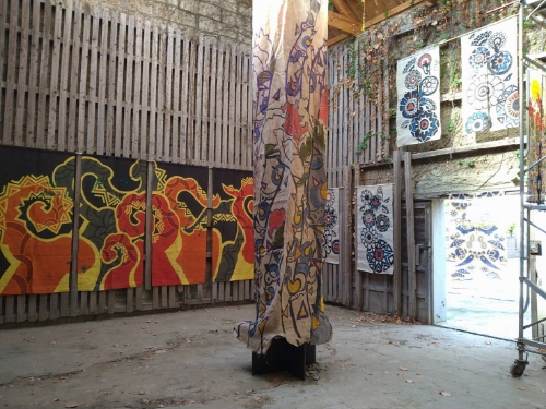 オシャレな街作り展示 「土井製麺」 石山友禅染研究室主催
