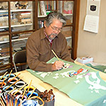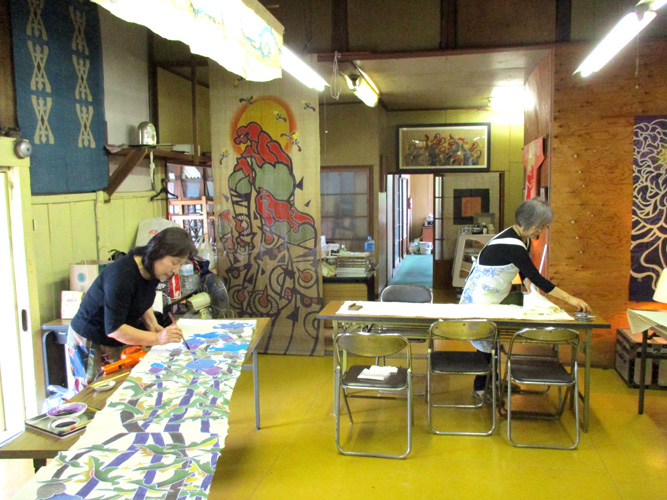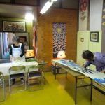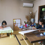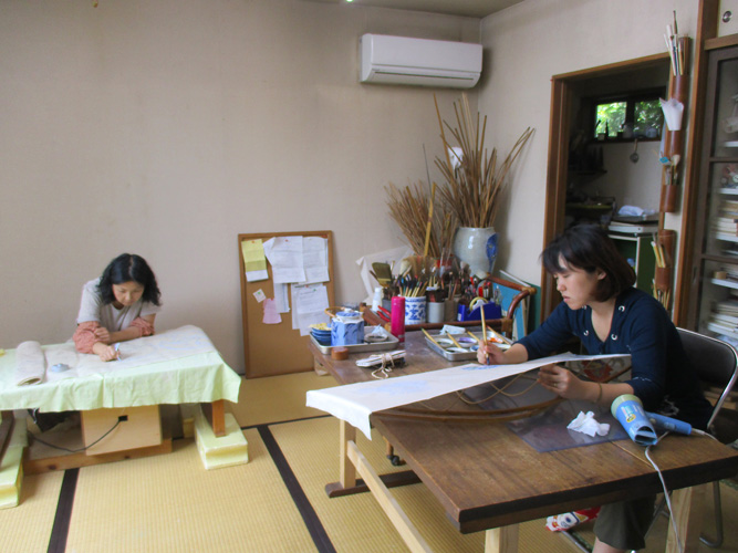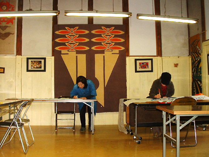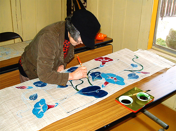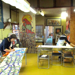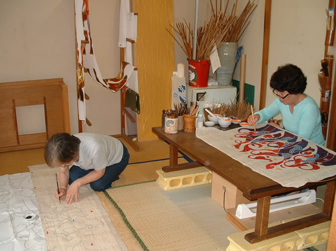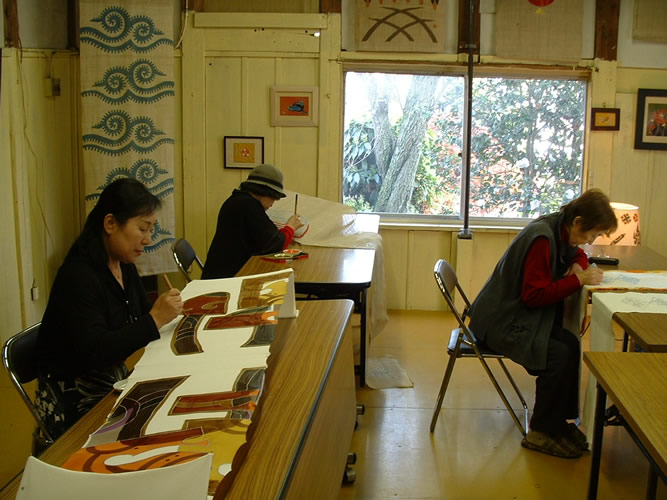 この教室は未経験の方、デザイン、色彩に自信の無い方にも短期間指導で作品を完成させ日々の暮しの中で友禅染を生かして頂く事を目的として開室いたしました。